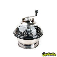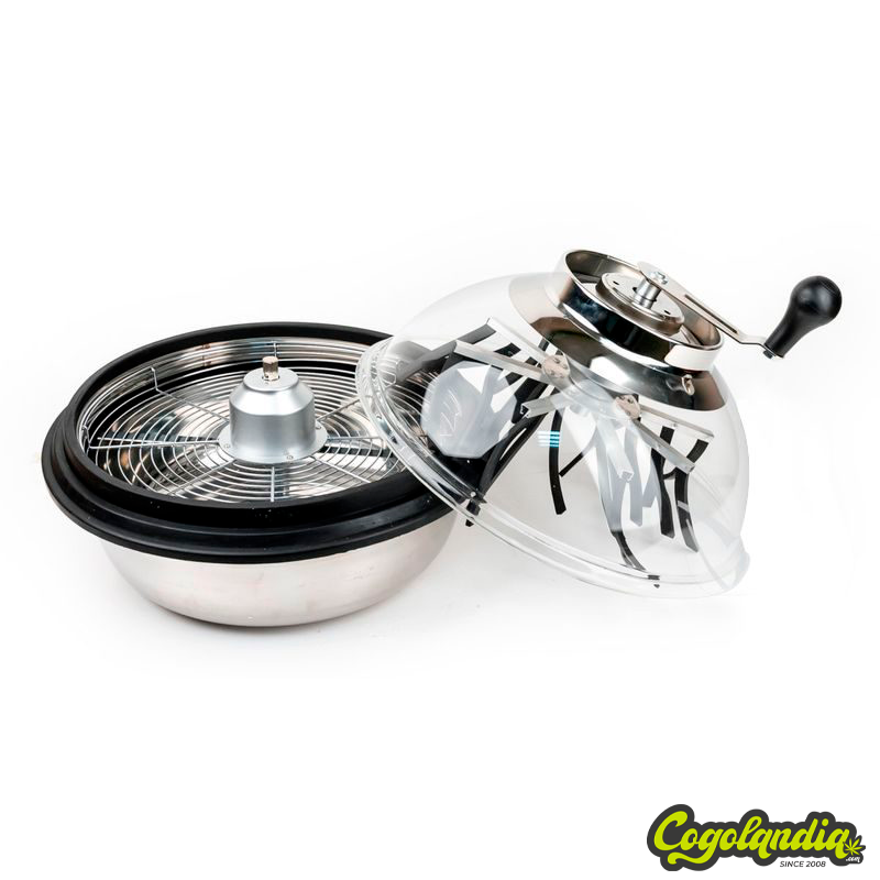 Solo hay que quitar la tapa, añadir material fresco de plantas sobre la reja central, cerrar la tapa, y dar 15 o 20 vueltas a la manivela para que los cogollos estén limpios y listos.