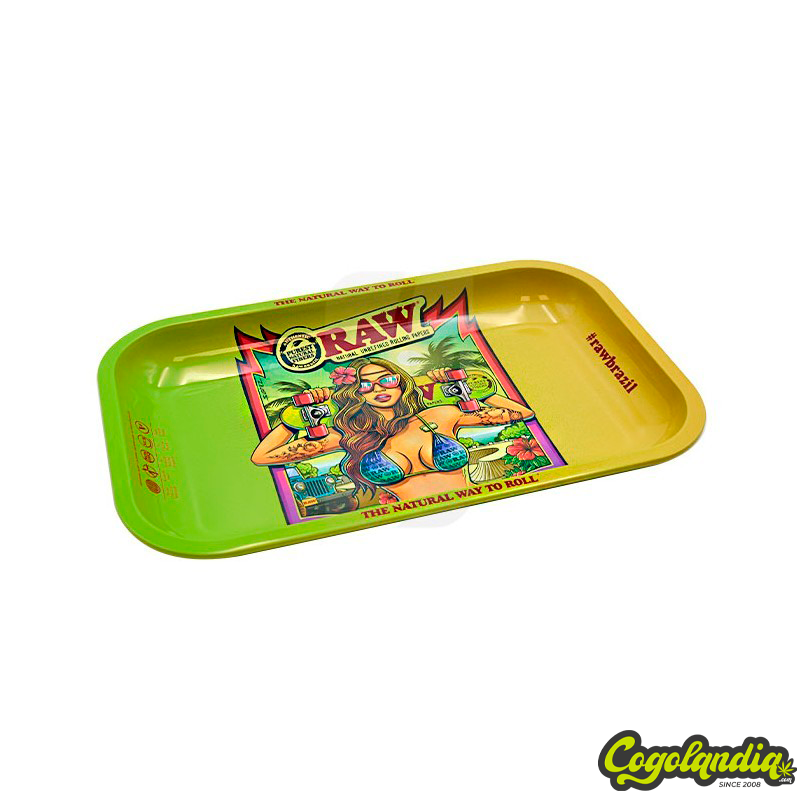 Bandeja para liarte tus porros, con forma rectangular y de bordes redondeados, excelente para acomodar papeles, filtros y tabaco. Posee una superficie lisa muy fácil de limpiar. Cuenta con una base magnética donde podrás colocar la pieza para facilitar el liado de tus canutos. Elegante Bandeja Raw Brazil de metal con los bordes curvos 100% RAWthentic. Impresionante combinación de colores, fondo negro combinado con el color rojo del logotipo y dorado a un precio difícil de superar. En esta ocasión ayudaremos al planeta con la compra de esta bandeja. Raw, en colaboración con Carbonfund.org, plantará un árbol por cada una de estas bandejas vendidas.